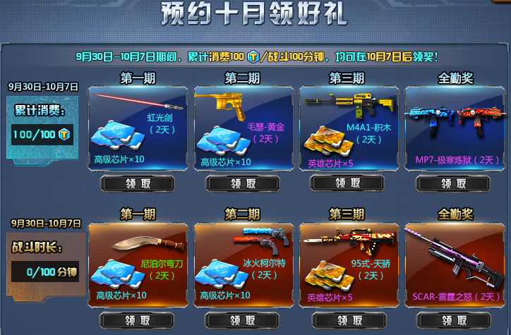 ① 活动期间,玩家累计消费满100TZ点或战斗时长满100分钟,分别可以在10月7日后领取丰厚大奖!(战斗时长以匹配区和天梯赛为准,中途退出不计)