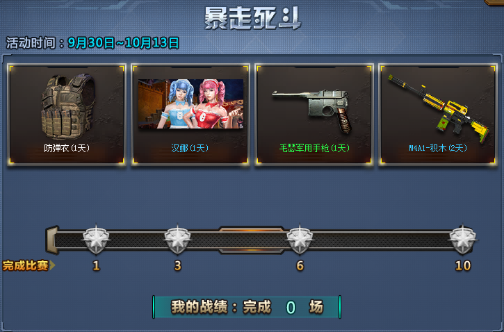 活动期间,在匹配区暴走死斗模式完成一定场次比赛,即可领奖。中途退出不计入活动。