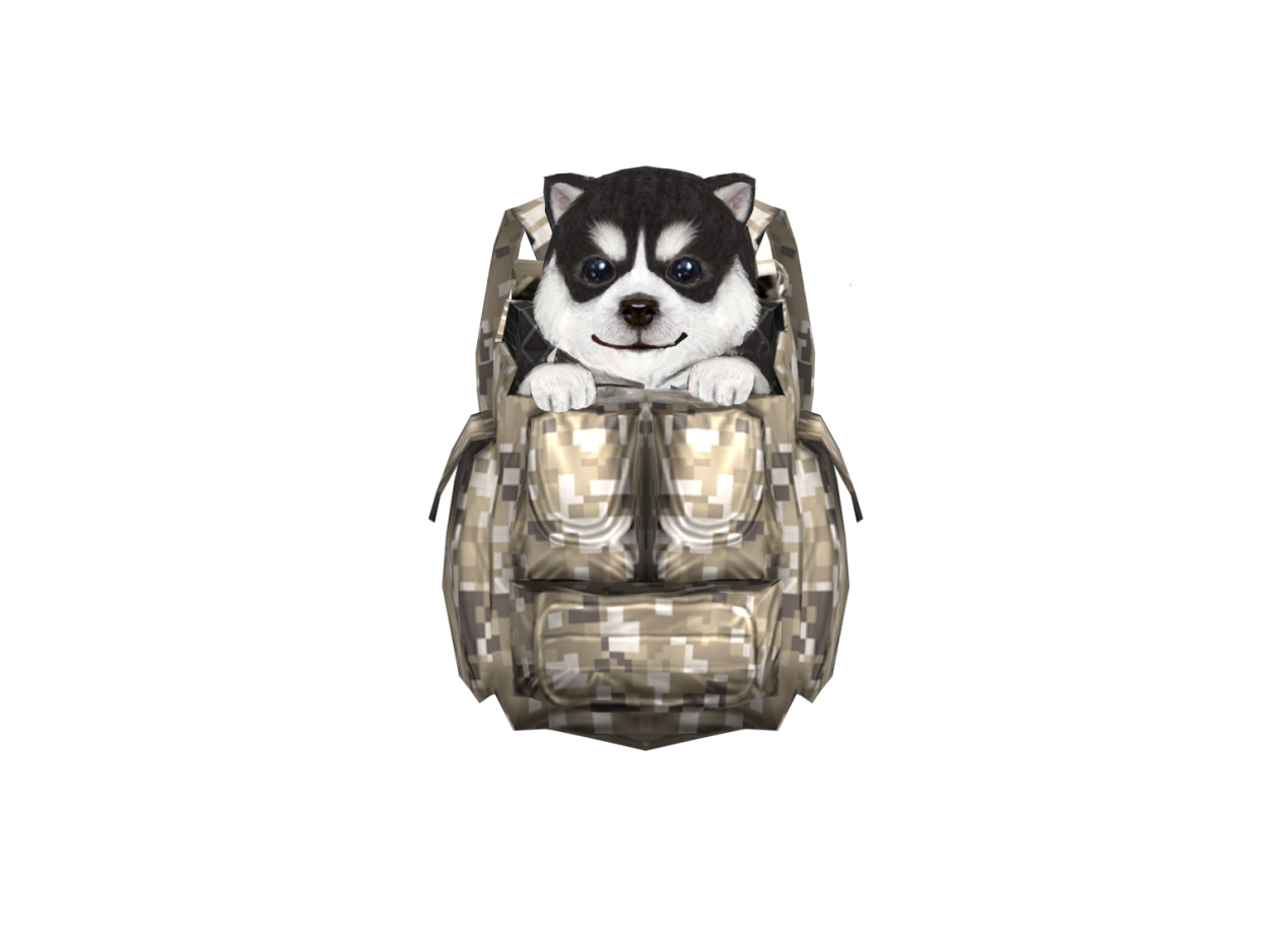 可爱的幼年哈士奇宠物背包。哈士奇在战斗内会有萌萌的动作哦!