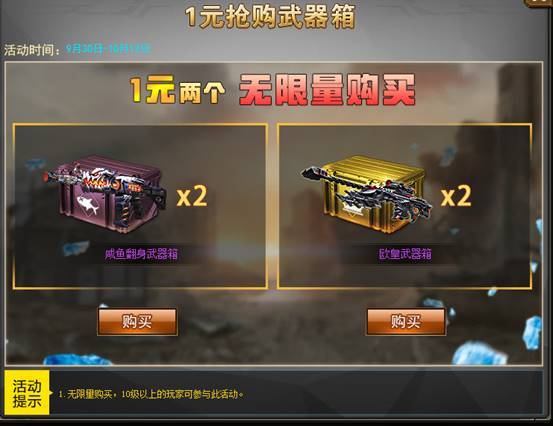 1元抢购武器箱专场,武器箱再升级,狂送幸运钥匙!