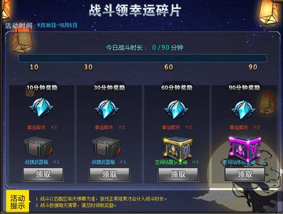 战斗开宝箱福利再升级,幸运碎片免费产!每天战斗90分,月轮礼包不是梦!