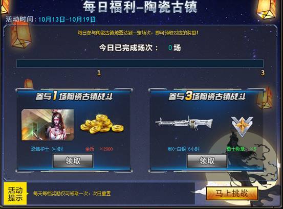 每日参与陶瓷古镇地图爆破模式达到一定场次,即可领取丰厚奖励!
