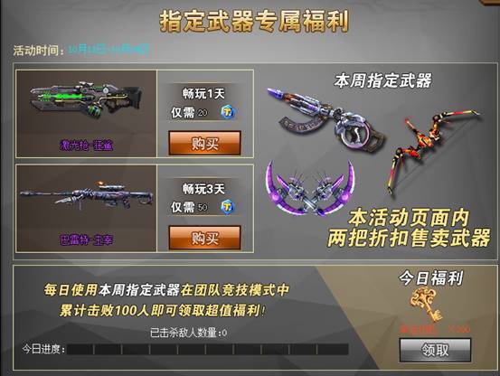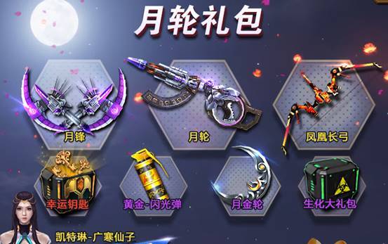 活动期间使用月轮礼包内任意武器以及两把特惠武器进行杀敌达到指定数量,即可领取海量幸运钥匙!