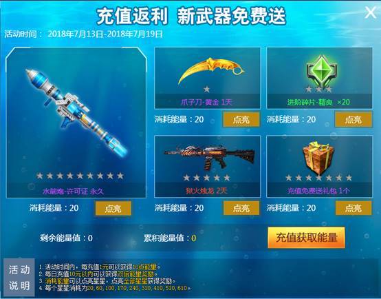 2. 每日充值10元以内可以获得双倍能量奖励。