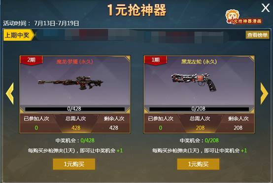 本期更新夺宝武器,增加魔龙·梦魇与黑龙左轮夺宝