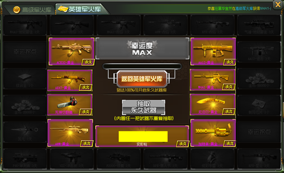 (2)高级军火库中点击“进入永久军火库”,可抽取11把王者史诗永久武器的其中1把;