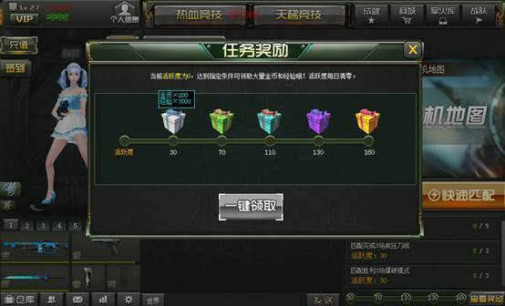 (2)每天完成不同任务,达到一定活跃度后可获得对应数量的金币和经验。