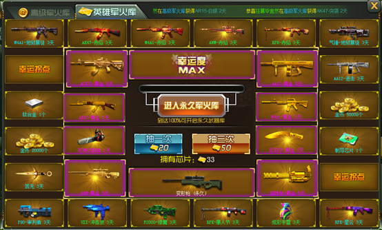 (2)武器升阶材料可在军火库抽奖和兑换系统获得,活动将不定期产出。