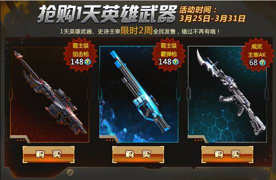 【活动规则】新版送福利,1天英雄武器全民发售啦!