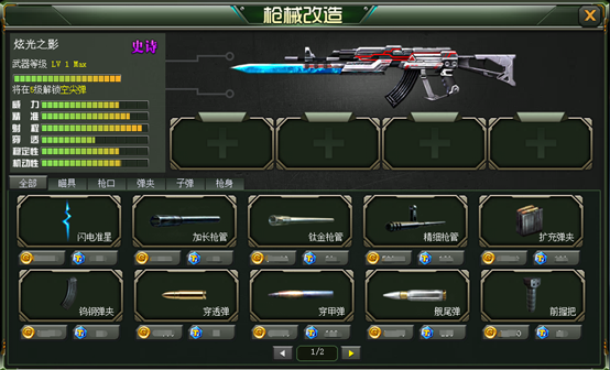 (2)通过装备不同的武器配件,可改变武器威力、精准、射程等各种属性。