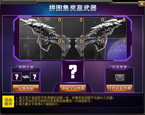 活动规则:收集拼图兑换奖励,每天最多可以获得4个拼图。