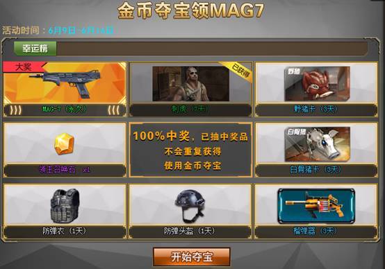 上次的芯片夺宝错过了是不是耿耿于怀,没关系!第二期夺宝又来了,而且只需金币即可参与,全新霰弹枪MAG7等你赢取。好马配英雄,黑夜里的萤火虫,当然要最新款的喷子才能彰显身份!