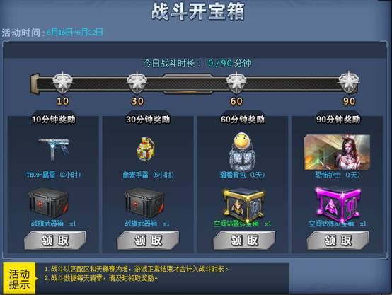 只要达到固定的战斗时长就可以领取额外的箱子和道具!