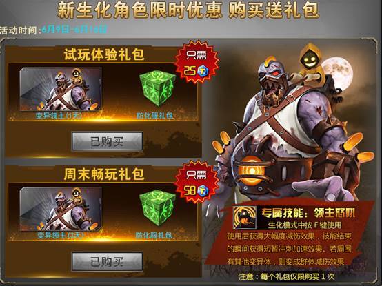 骚年,当领主吗?全新生化角色变异领主,只要25TZ点即可体验,还送防化服。两块五即可上车,胖子领主任骑!