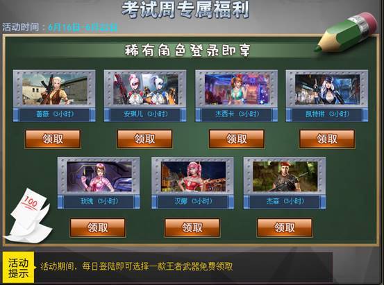 暑假最后的考验——考试周就在眼前,特战英雄奉上丰厚奖励只为给您在紧张的备考氛围中带来慰藉。稀有角色,无门槛登录即领!