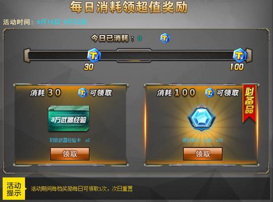 全新的AR15-机甲革命上线了,进阶获得却不够等级?没有碎片?别担心我们统统送您!活动期间消耗达到指定条件即可领取AR15-机甲革命进阶材料!每档奖励每日限领取1次。