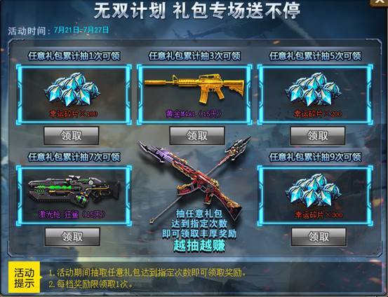 庆无双礼包上线,抽取任意礼包达到指定次数即可领取丰厚返利!海量幸运碎片、稀有史诗武器等你来领。