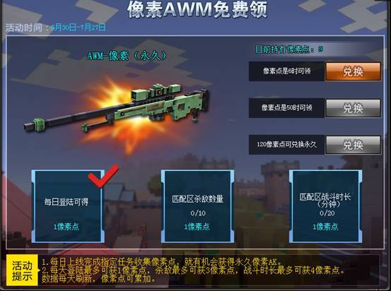 绝版像素AWM免费领取,仅此一次!每日活跃皆可免费领取,错过就只能等明年咯~
