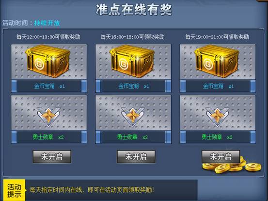 准点在线有奖全面更新,金币宝箱开不停,上线就能领。无门槛,高福利特战英雄带你high!