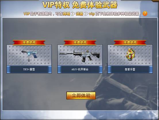 VIP免费体验武器再次上新!像素手雷、TEC9-暴雪等稀有武器统统免费试用!
