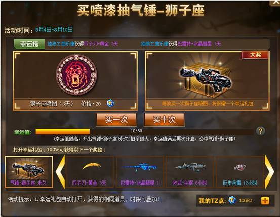 全新星座武器——气锤-狮子座搭配专属喷漆抽奖,超高丰厚奖励抽取狮子座!检验血统的时候到了,抽吧,少年!