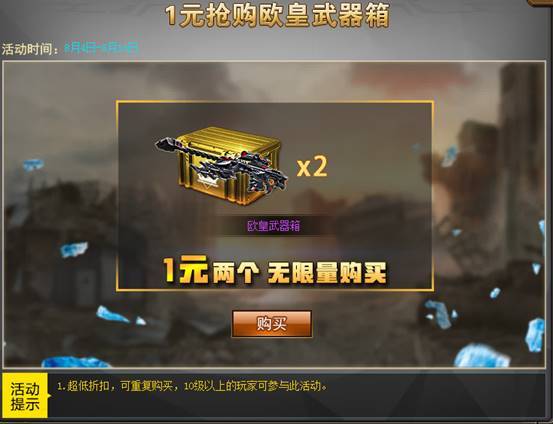 欧皇武器箱继续上线售卖!1元两个,史上最低折扣。无限量购买,黑龙遗愿轻松拿!