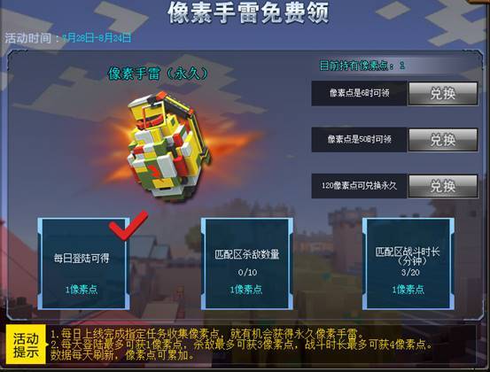 绝版像素手雷免费领取,仅此一次!每日活跃皆可免费领取,错过就只能等明年咯~