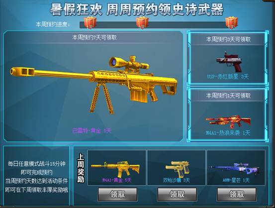 暑假预约活动持续上线!本周预约最高奖励——巴雷特-黄金!