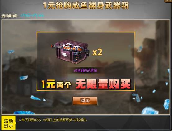 1元2个!1元2个!咸鱼翻身武器箱无限量购买,一发入魂即可拥有永久狱火烛龙!