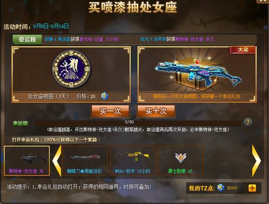 最新星座武器——斯特林-处女座火爆上线,买配套喷漆即可参与抽奖!80次必中,更有海量超值道具等你来抽!