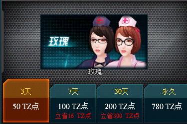 上图就是玫瑰的价格了,我们看到玫瑰是有永久购买选项的,并且是永久购买的女性角色。所以战斗中玫瑰的出场率还是蛮高的。