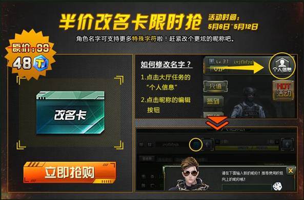 活动规则:原价99TZ点的改名卡限时打折,只需48TZ点即可抢购!