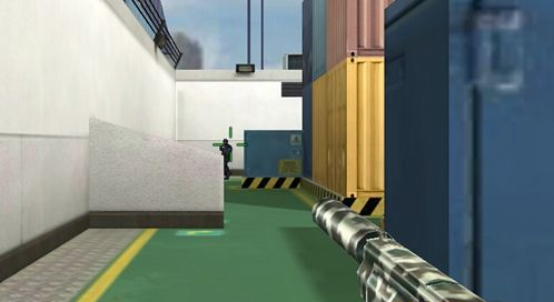 说道卡点,意思就是你负责一个点位,当有敌人经过的时候可以第一时间将其干掉!但是卡点的首要条件就是要确保自己的位置不会事先暴露给敌人,所以我们要找一个安全的地方,上图的这里就是复活点通往中路的障碍物,不可穿透,当我们正面面对上图单孔的位置的时候,是安全的,同时我们的位置还可以迅速出击边路的敌人!