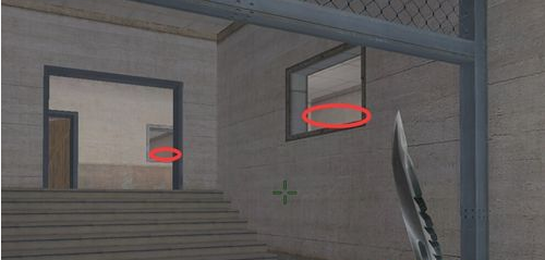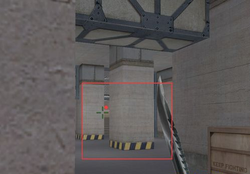 上图是我们进入B仓的位置,如果敌人同样是第一时间就冲向B的话,这里就是相遇的点,那么我们需要提防哪个就是途中标记的位置。