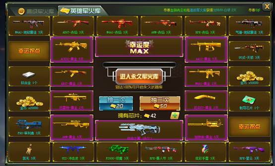 军火库的存在可以让玩家们更轻松的获得给力的武器!每个军火库的抽取都需要相对应的芯片,大家一定要注意哦!