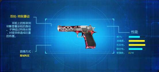 双枪-地狱暴徒:双枪上的炼狱刻纹彰显着该枪的身份。子弹经过特殊处理,对变异体造成巨量的伤害。