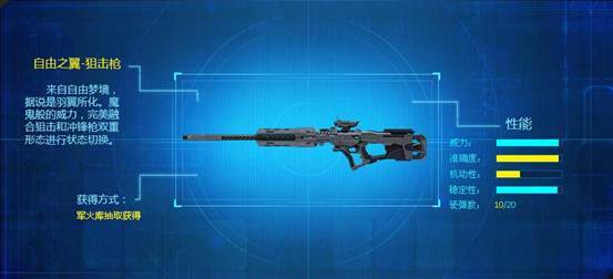 自由之翼-狙击枪:来自自由梦境,据说是羽翼所化,魔鬼般的威力,完美融合狙击和冲锋枪双重形态进行状态切换。